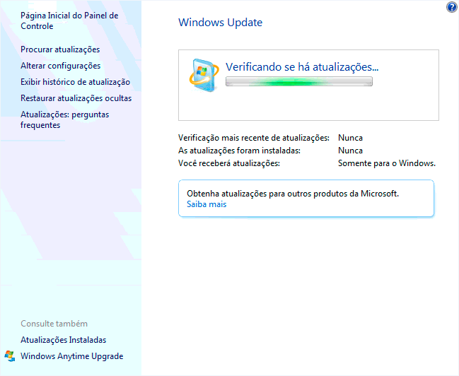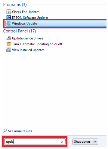 Faça as atualizações disponíveis no Windows Update, para isso clique no botão Iniciar e digite “Update”.