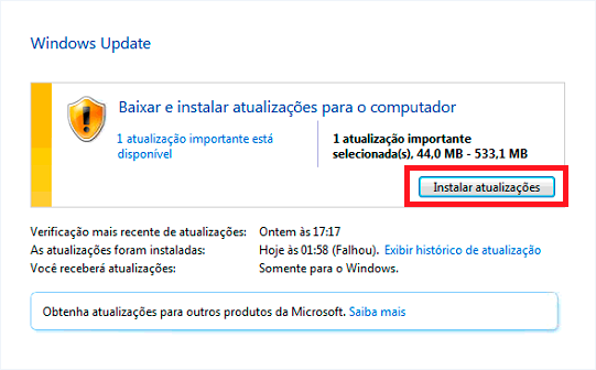 Clique em “Instalar Atualizações” e novamente aguarde, este processo também pode demorar.